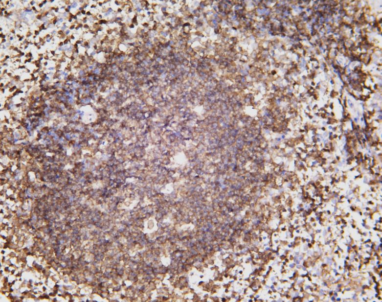 Immunohistochemistry: Mouse spleen stained with ARG67288 anti-Syk antibody [3C9].