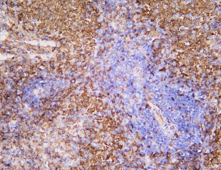Immunohistochemistry: Human spleen stained with ARG67288 anti-Syk antibody [3C9].