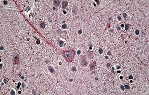 Immunohistochemistry: Paraffin-embedded Human brain tissue. Antigen Retrieval: Steam tissue section in Citrate buffer (pH 6.0). The tissue section was stained with ARG64858 anti-Synaptotagmin 1 antibody at 3.8 µg/ml dilution followed by AP-staining.