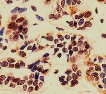 Immunohistochemistry: Paraffin-embedded Human breast tissue stained with ARG59495 anti-TBX1 antibody at 1:25 dilution.