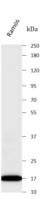 Western blot: Ramos stained with ARG44750 anti-TCL1A antibody at 1 µg/mL dilution.