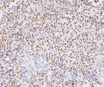 Immunohistochemistry: Paraffin embedded sections of Human seminoma tissue stained with ARG56958 anti-TDP43 antibody [k1B8] at 1:50 for 2 hours at RT. Antigen Retrieval: Boil tissue section in 0.1M Sodium citrate buffer (pH 6.0) for 20 min.