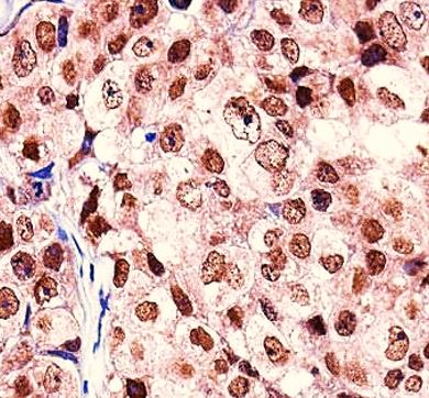 Immunohistochemistry: Formalin-fixed and paraffin-embedded Human breast carcinoma stained with ARG55431 anti-TERF2IP / RAP1 antibody.