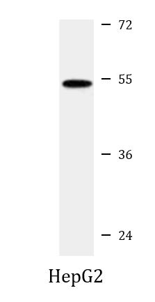 Western blot: 35 µg of HepG2 cell lysate stained with ARG55431 anti-TERF2IP / RAP1 antibody.