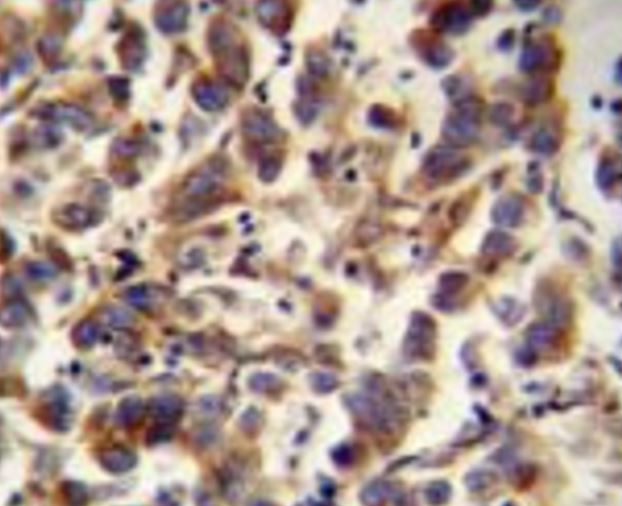Immunohistochemistry: Human testis carcinoma stained with ARG46739 anti-TFAM antibody.