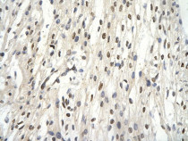 Immunohistochemistry: Paraffin-embedded Human cardiac cell (epithelial cells of renal tubule) stained with ARG59646 anti-TFIIE beta antibody at 4 - 8 µg/ml dilution. (Magnification: 400X).