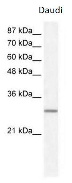 Western blot: Daudi cell lysate stained with ARG59646 anti-TFIIE beta antibody at 0.2 - 1 µg/ml dilution.
