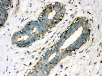 Immunohistochemistry: Human breast cancer stained with ARG10593 anti-TGM2 antibody.