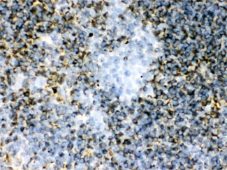 Immunohistochemistry: Mouse spleen tissue stained with ARG10593 anti-TGM2 antibody.