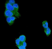 Immunofluorescence: HepG2 stained with ARG45457 anti-TIMP4 antibody at 5 μg/ml dilution.
