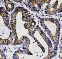 Immunohistochemistry: Human intestinal cancer stained with ARG45457 anti-TIMP4 antibody at 1 μg/ml dilution.