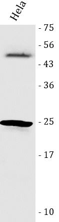 Western blot: Hela stained with ARG45457 anti-TIMP4 antibody at 0.5 μg/ml dilution.