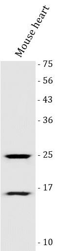 Western blot: Mouse heart stained with ARG45457 anti-TIMP4 antibody at 0.5 μg/ml dilution.