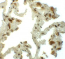 Immunohistochemistry: Paraffin-embedded Human lung tissue stained with ARG40597 anti-TM4SF1 antibody at 5 µg/ml dilution.