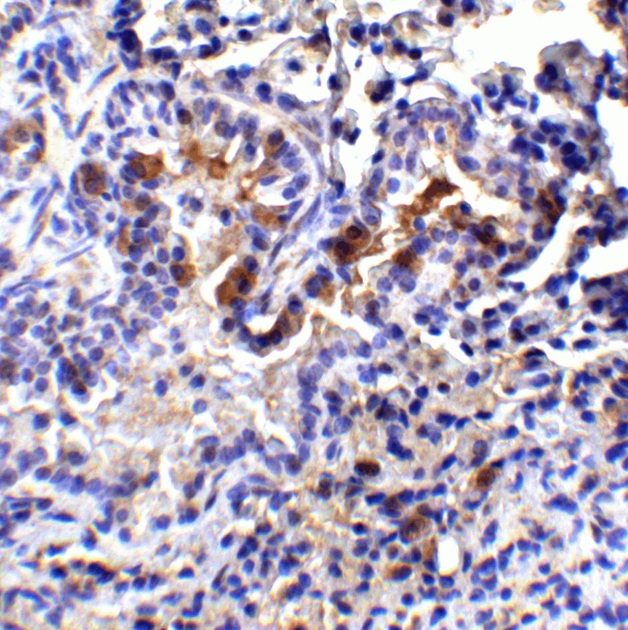 Immunohistochemistry: Paraffin-embedded Mouse lung tissue stained with ARG40597 anti-TM4SF1 antibody at 5 µg/ml dilution.