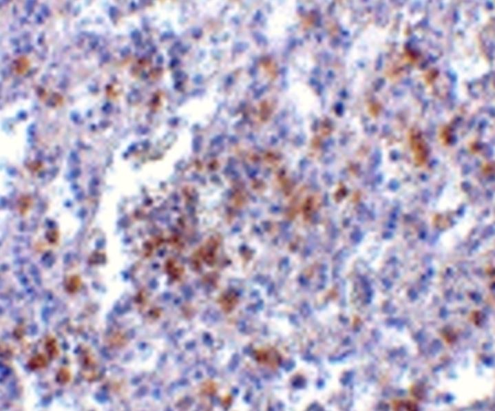 Immunohistochemistry: Human spleen stained with ARG46149 anti-TMC6 antibody.