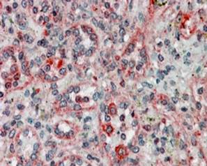 Immunohistochemistry: Paraffin-embedded Human placenta tissue. Antigen Retrieval: Steam tissue section in Citrate buffer (pH 6.0). The tissue section was stained with ARG63643 anti-TMX1 / TXNDC1 antibody at 3.75 µg/ml dilution followed by AP-staining.