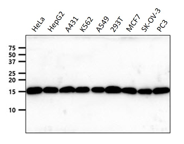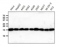 Western blot: 40 µg of HeLa, HepG2, A431, K562, A549, 293T, MCF7, SK-OV-3 and PC3 cell lysates stained with ARG57504 anti-TOMM20 antibody [1B2] at 1:1000 dilution.