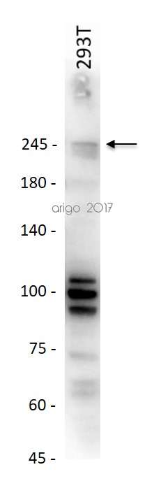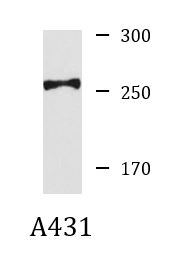 Western blot: 25 ug of A431 cell lysate stained with ARG56882 anti-TP53BP1 antibody at 1:1000 dilution.