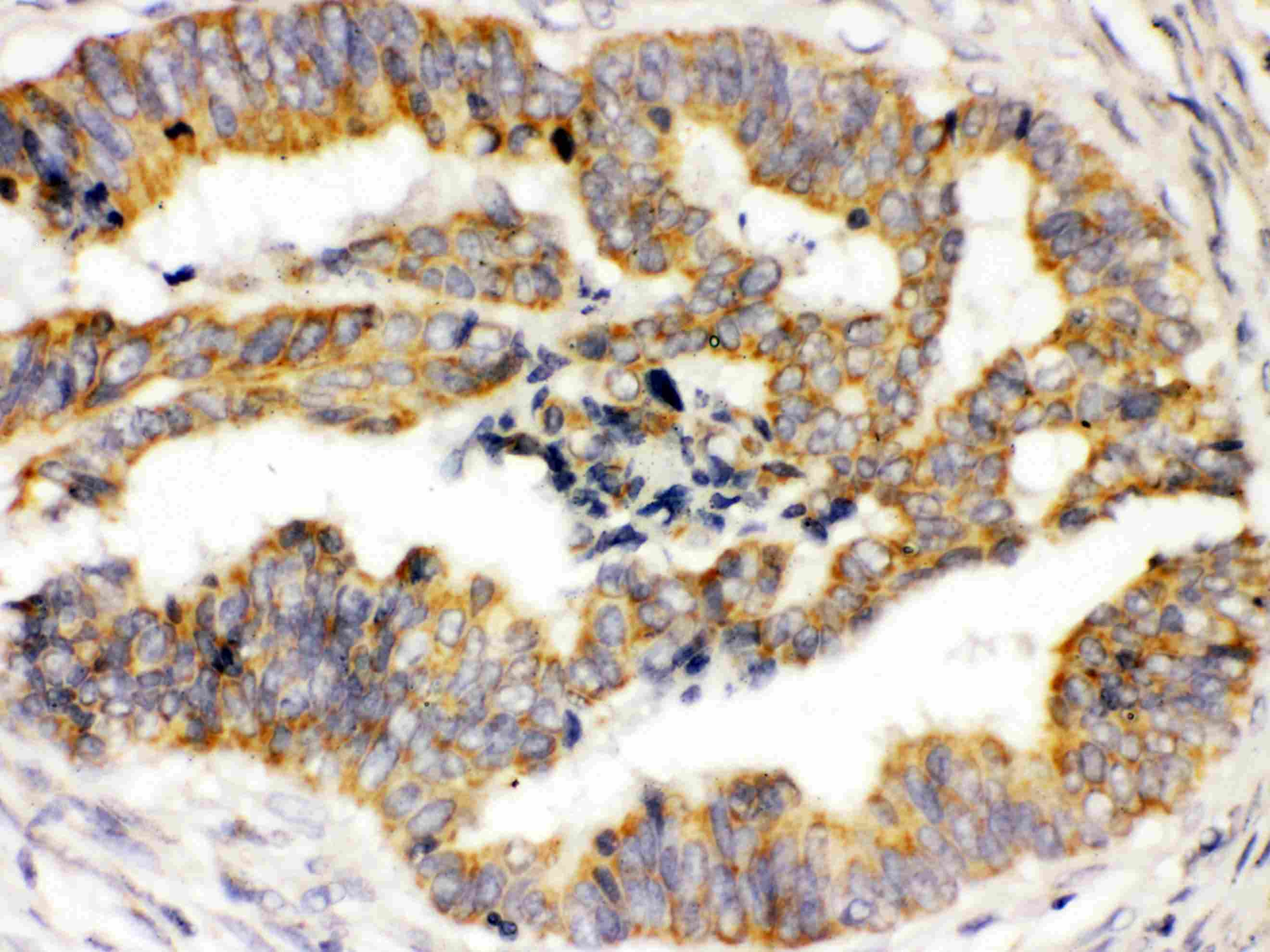 Immunohistochemistry: Paraffin-embedded Human intestinal cancer stained with ARG59339 anti-TRPM4 antibody at 1 ug/ml dilution.