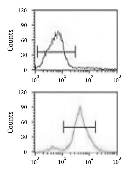 Flow Cytometry: 293 cells stained with ARG59371 anti-TSPAN12 antibody (bottom histogram) or without primary antibody as control (top histogram), followed by incubation with FITC labelled secondary antibody.