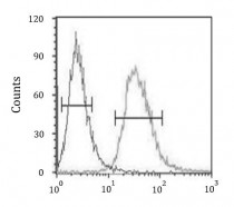 Flow Cytometry: CEM cells stained with ARG57523 anti-TSPAN7 antibody (right histogram) or without primary antibody as control (left histogram), followed by incubation with FITC labelled secondary antibody.