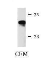 Western blot: 35 µg of CEM cell lysate stained with ARG57523 anti-TSPAN7 antibody.