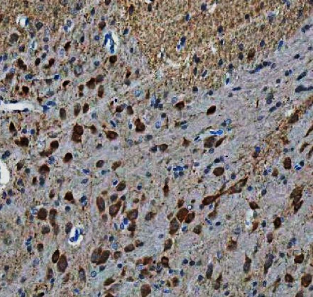 Immunohistochemistry: Rat brain stained with ARG45616 anti-TSR2 antibody at 2 μg/ml dilution.