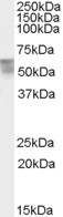 Western blot: Human Bone Marrow lysate (35 µg protein in RIPA buffer) stained with ARG64299 anti-Thyroid Hormone Receptor alpha antibody at 0.5 µg/ml dilution.