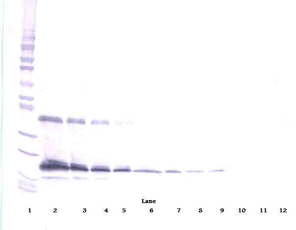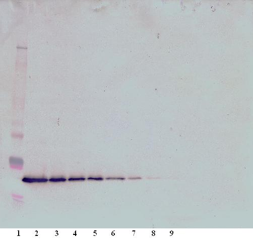 Western blot: 250 - 0.24 ng of Human TPO stained with ARG66013 anti-Tpo / Thrombopoietin antibody, under non-reducing conditions.