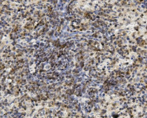 Immunohistochemistry: Paraffin-embedded Rat spleen tissue. Antigen Retrieval: Heat mediation was performed in EDTA buffer (pH 8.0). The tissue section was blocked with 10% goat serum. The tissue section was then stained with ARG43066 anti-U2AF2 / U2AF65 antibody at 1 µg/ml dilution, overnight at 4°C.