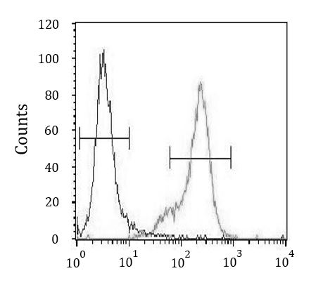 Flow Cytometry: NCI-H460 cells stained with ARG55836 anti-UCHL1 / PGP9.5 antibody (right histogram) or without primary antibody control (left histogram), followed by incubation with FITC labelled secondary antibody.