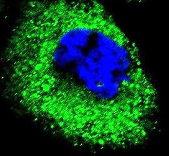Immunofluorescence: NCI-H460 cells stained with ARG55836 anti-UCHL1 / PGP9.5 antibody (green). DAPI (blue) for nuclear staining.