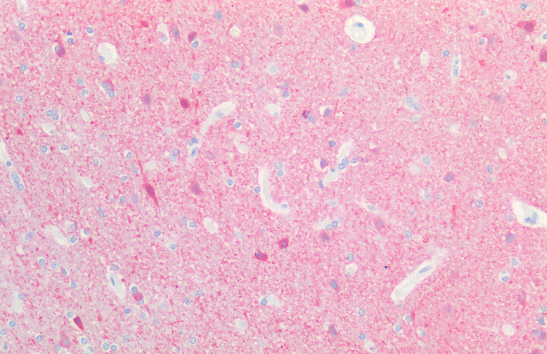 Immunohistochemistry: Paraffin-embedded Human cortex tissue. Antigen Retrieval: Steam tissue section in Citrate buffer (pH 6.0). The tissue section was stained with ARG65300 anti-UCHL1 / PGP9.5 antibody at 2.5 µg/ml dilution followed by AP-staining.