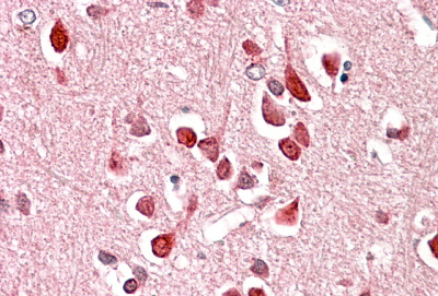 Immunohistochemistry: paraffin embedded Human Cerebral Cortex. (Steamed antigen retrieval with citrate buffer pH 6) stained with ARG64871 anti-UNC5C antibody at 3.8 µg/ml dilution followed by AP-staining.