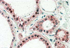 Immunohistochemistry: paraffin embedded Human Thyroid Gland. (Steamed antigen retrieval with citrate buffer pH 6) stained with ARG64663 anti-UXT antibody at 5 µg/ml dilution followed by AP-staining.