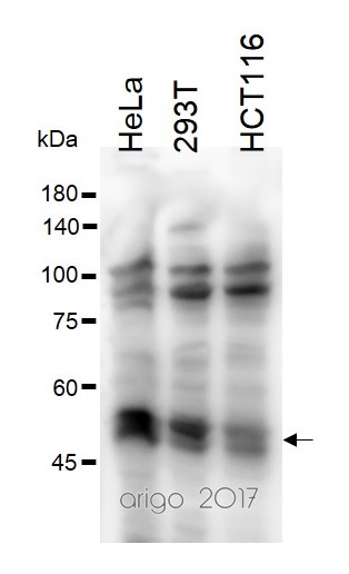 | Application Note | WB: Recommend incubate at RT for 1h. Approx 48 kDa band observed in lysates of human kidney fibroblast cell line HEK293 (calculated MW of 48.5 kDa according to NP_002649.1). A minor band was also consistently observed at appox 35 kDa. This band was successfully blocked by incubation with the immunising peptide, and is consistent with the B chain of Cathepsin B-mediated cleavage product of PLAU (Kobayashi et al, J Biol Chem. 1991 Mar 15;266(8):5147-52; PMID: 1900515). * The dilutions indicate recommended starting dilutions and the optimal dilutions or concentrations should be determined by the scientist. |