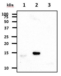 Western blot: 50 ng of 1) Recombinant Human VAMP1, 2) Recombinant Human VAMP2, and 3) Recombinant Human VAMP3 stained with ARG56935 anti-VAMP2 antibody [3E5] at 1:1000.