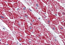 Immunohistochemistry: Paraffin-embedded Human heart tissue. Antigen Retrieval: Steam tissue section in Citrate buffer (pH 6.0). The tissue section was stained with ARG63455 anti-VDAC2 antibody at 5 µg/ml dilution followed by AP-staining.