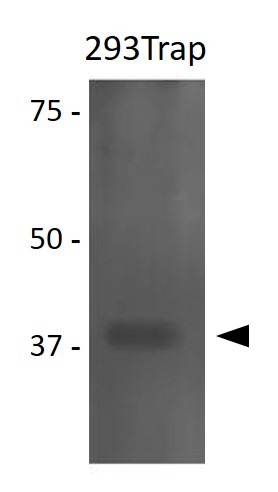 Western blot: 15 µg of Human 293Trap cell lysates stained with ARG23721 anti-WDR45 antibody at 1:1000 for 1 hour at RT.