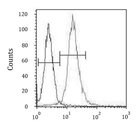 Flow Cytometry: WiDr cells stained with ARG55016 anti-WDR5B antibody (right histogram) or without primary antibody control (left histogram), followed by incubation with FITC labelled secondary antibody.