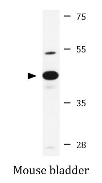 Western blot: 35 µg of Mouse bladder lysate stained with ARG55444 anti-Wnt4 antibody.