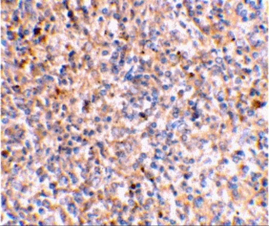 Immunohistochemistry: Paraffin-embedded Human spleen stained with ARG59427 anti-XAF1 antibody at 10 µg/ml dilution.