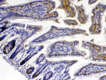 Immunohistochemistry: Paraffin-embedded Mouse intestine tissue. Antigen Retrieval: Heat mediated was performed in Citrate buffer (pH 6.0, epitope retrieval solution) for 20 min. The tissue section was blocked with 10% goat serum. The tissue section was then stained with ARG59194 anti-XDH / Xanthine Oxidase antibody at 1 µg/ml dilution, overnight at 4°C.
