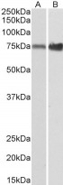Western Blot: Mouse (A) and Rat (B) Small Intestine lysates (35 µg protein in RIPA buffer) stained with ARG64953 anti-XPNPEP1 antibody at 0.1 µg/ml dilution.