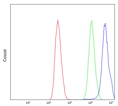 Flow Cytometry: MCF-7 stained with ARG45146 anti-ZBTB7A antibody at 1 µg/10^6 cells dilution.