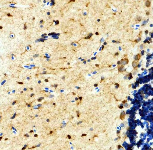 Immunohistochemistry: Zebrafish cerebellum stained with ARG45862 anti-Zebrafish tyrosine hydrxylase antibody at 2 μg/ml dilution.