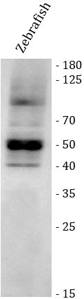 Western blot: Zebrafish stained with ARG45862 anti-Zebrafish tyrosine hydrxylase antibody at 0.5 μg/ml dilution.