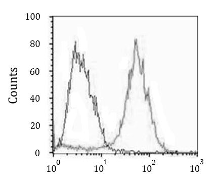 Flow Cytometry: MCF7 cells stained with ARG55148 anti-alpha 1D Adrenergic Receptor antibody (right histogram) at 1:25 dilution or isotype control antibody (left histogram), followed by incubation with Alexa Fluor® 488 labelled secondary antibody.