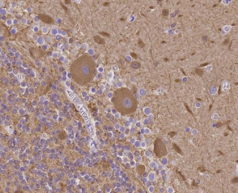 Immunohistochemistry: Human cerebellum stained with ARG44762 anti-beta III Tubulin antibody at 5 µg/mL dilution.